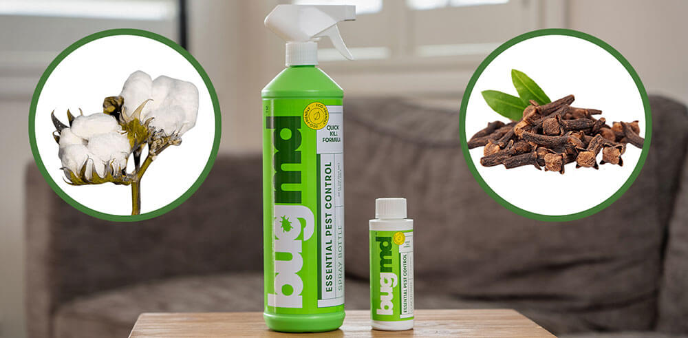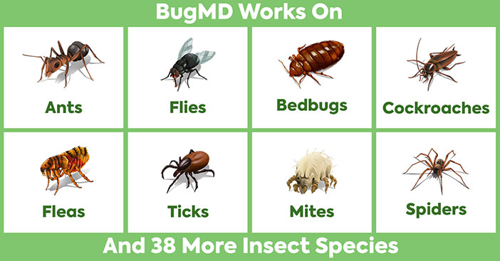 BugMD uses a potent combination of clove and cottonseed oils to wipe out fleas, flies, roaches, bedbugs, ticks, ants, and 40 more species of household insects.