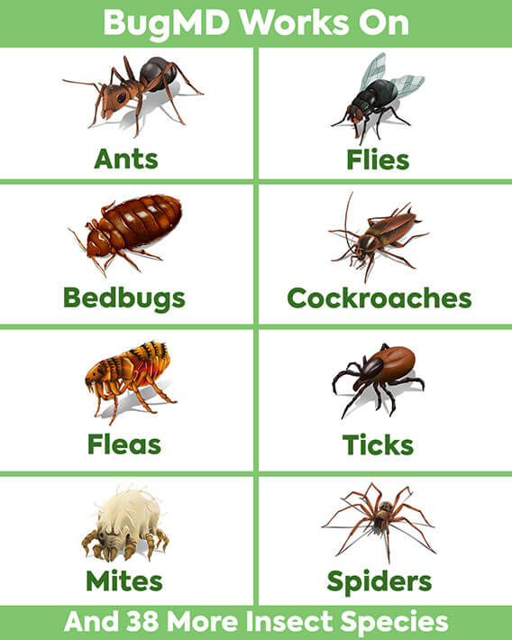 It’s called BugMD Pest Concentrate. It packs enough punch to kill over 40 species of insects on contact, including cockroaches, ants, fleas, ticks, bedbugs, and silverfish. And since it’s made from natural ingredients, it’s completely non-toxic and safe to use around kids and pets.